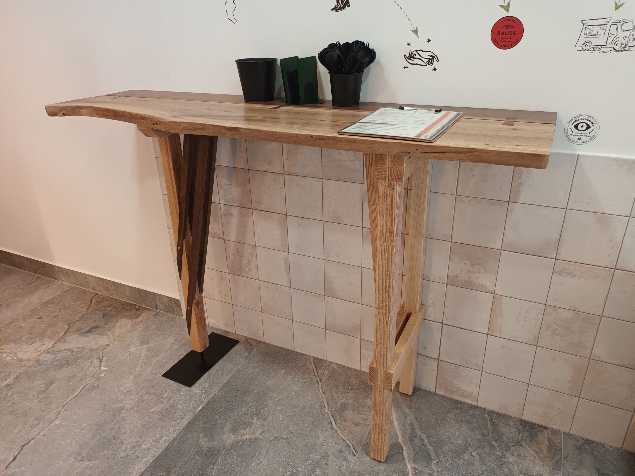 Mesa tipo barra de Fresno con teclado