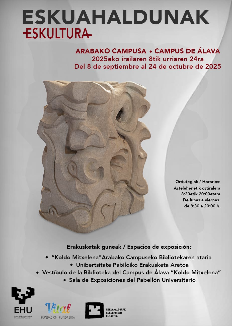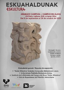 La sala de exposiciones del Pabellón Universitario del Campus de Álava acogió, del 8 de septiembre al 24 de octubre de 2025, una muestra colectiva formada por escultores y escultoras de la asociación Eskuahaldunak, entre cuyas obras se incluyeron piezas de Marcos Castellanos.